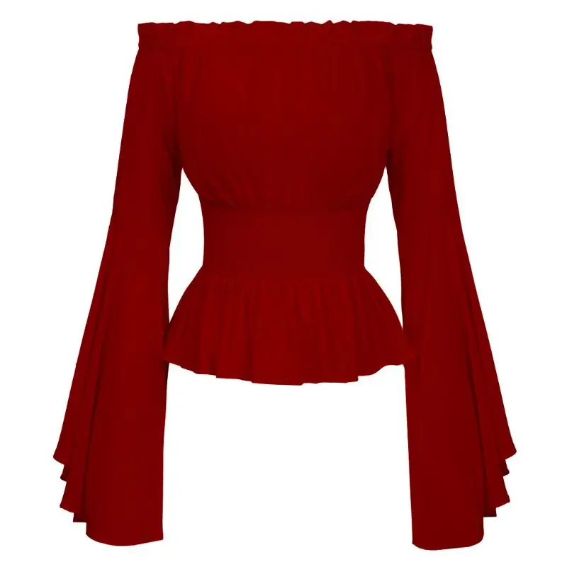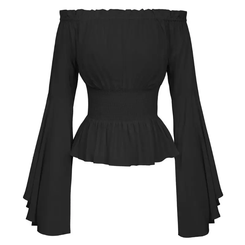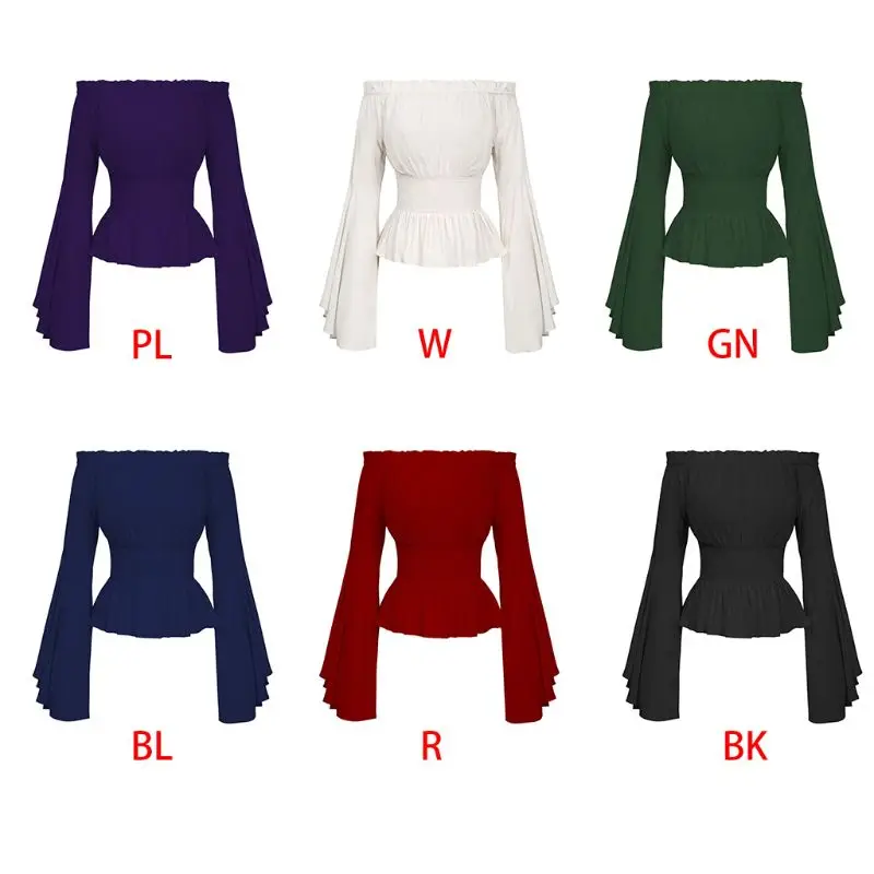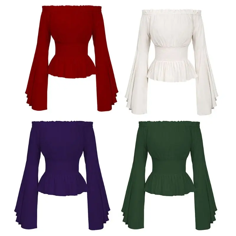 amazing Womens Gothic Renaissance Blouse Flare Sleeves Ruffles Off Shoulder Corset Tops Medieval Victorian