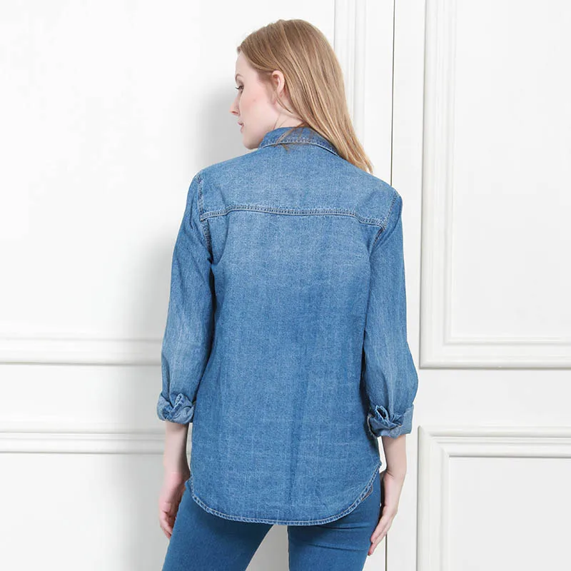 discount 11.11 Autumn Winter Women Denim Basic Shirt Loose Casual Long Sleeve With 2 Pockets 100% Cotton Was