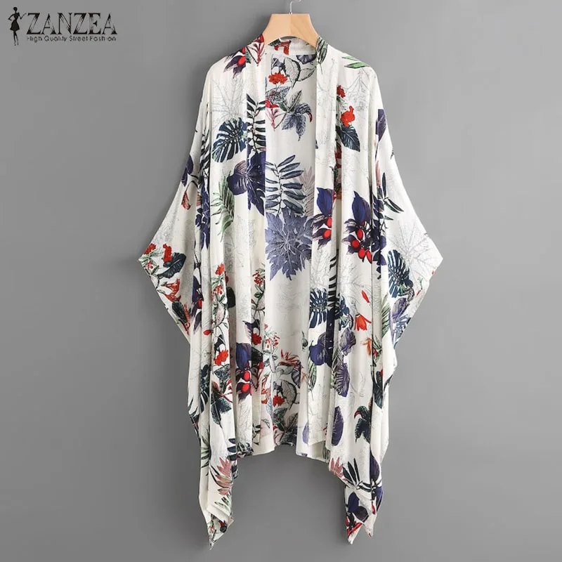 buy 2019 Plus Size ZANZEA Spring Women Casual Sleeve Floral Printed Loose Cardigan Blouse Shawl Cloak S