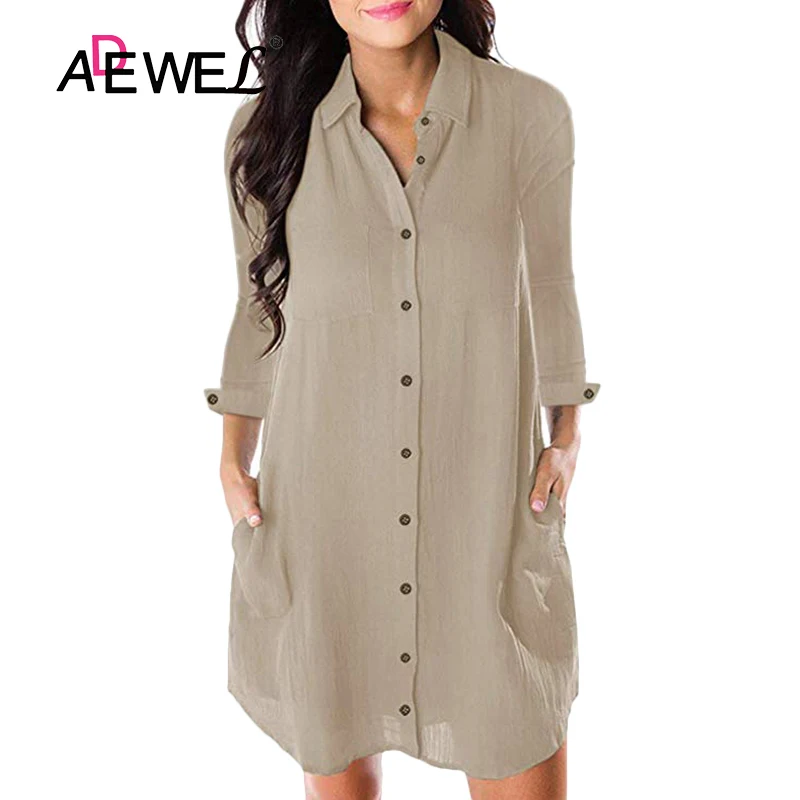 Very best ADEWEL Womens Tops and Blouses Spring Summer Casual Shirt Dress Button Long Sleeve Loose Blouse Tur