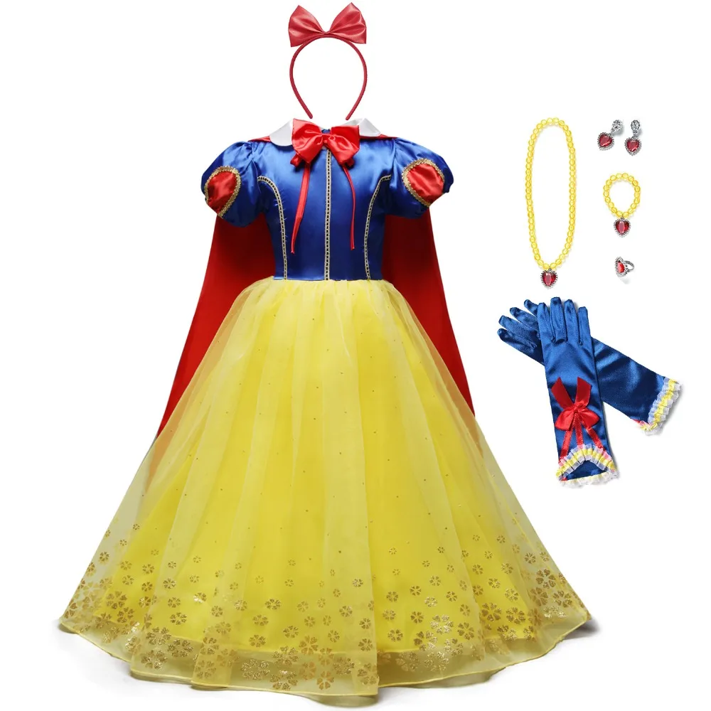 wonderful YOFEEL Princess Snow White Dress up Costume for Girls Kids Puff Sleeve Costumes with Long Cloak Chi
